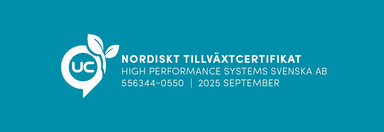 HPS har tilldelats Nordiskt tillväxtcertifikat för bokslutet 2024/2025. Det är andra året i rad vi får utmärkelsen. UC Nordiskt Tillväxtcertifikat är en kvalitetsstämpel som delas ut av UC till ett fåtal företag för att de har en positiv, stabil och hållbar tillväxt.